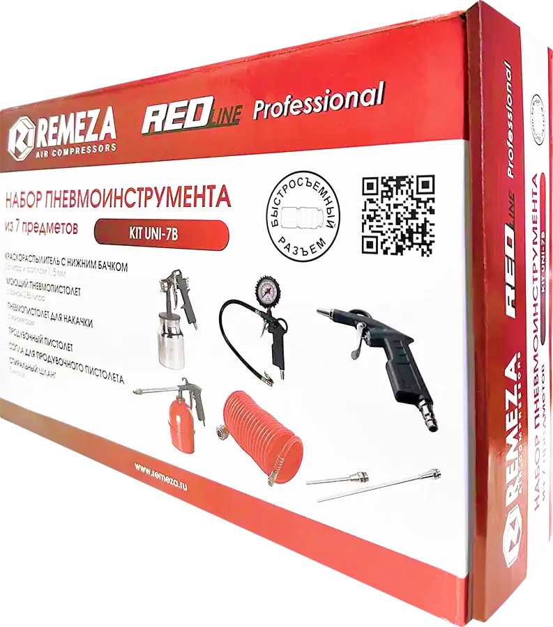 Все инструменты в наборах имеют быстросъёмное подключение, благодаря чему к спиральному шлангу можно быстро подключить любой инструмент и приступить к выполнению рабочей операции.